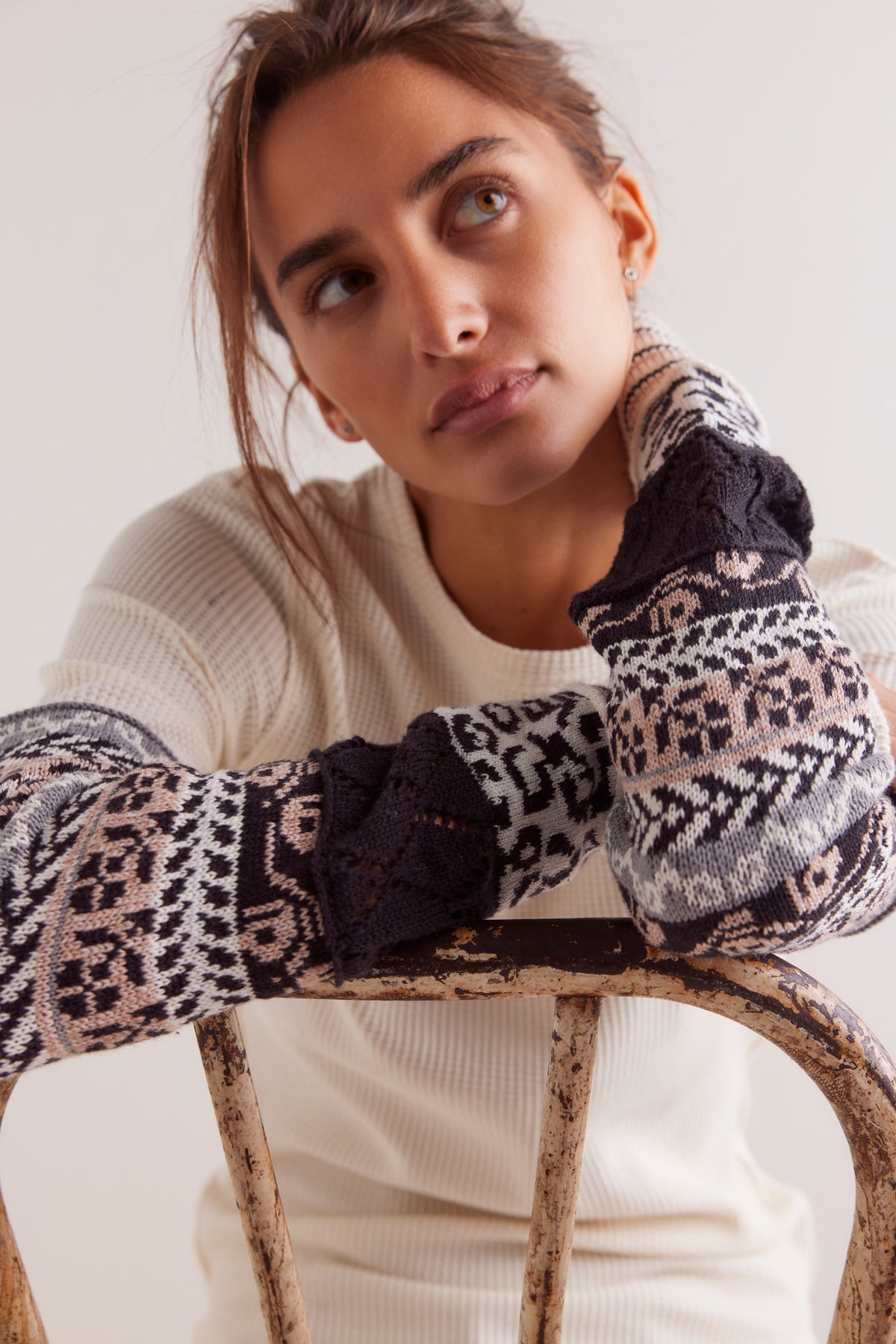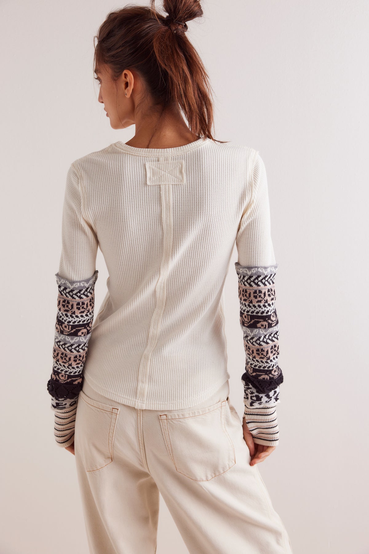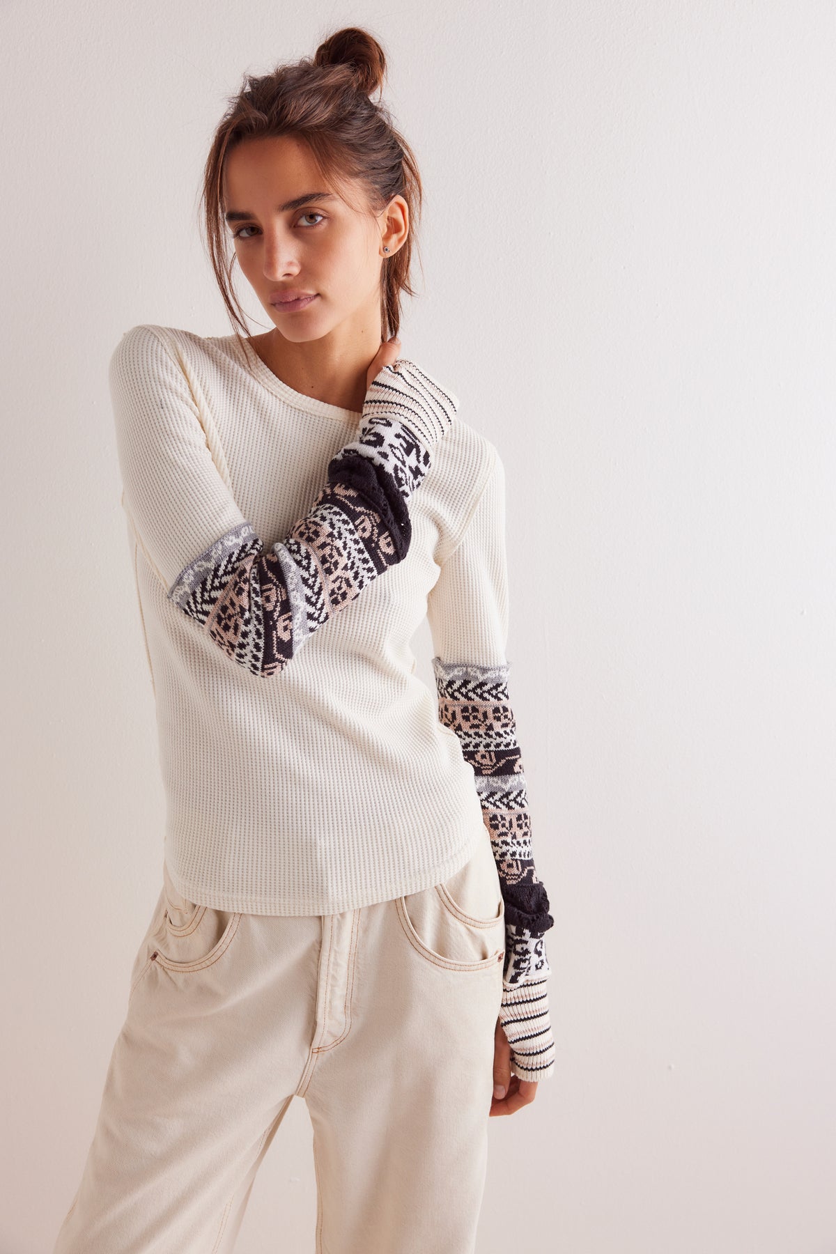 Cuffing season is finally here. This top features a relaxed fit and long-sleeve style with exaggerated printed cuffs and thumbhole detailing.