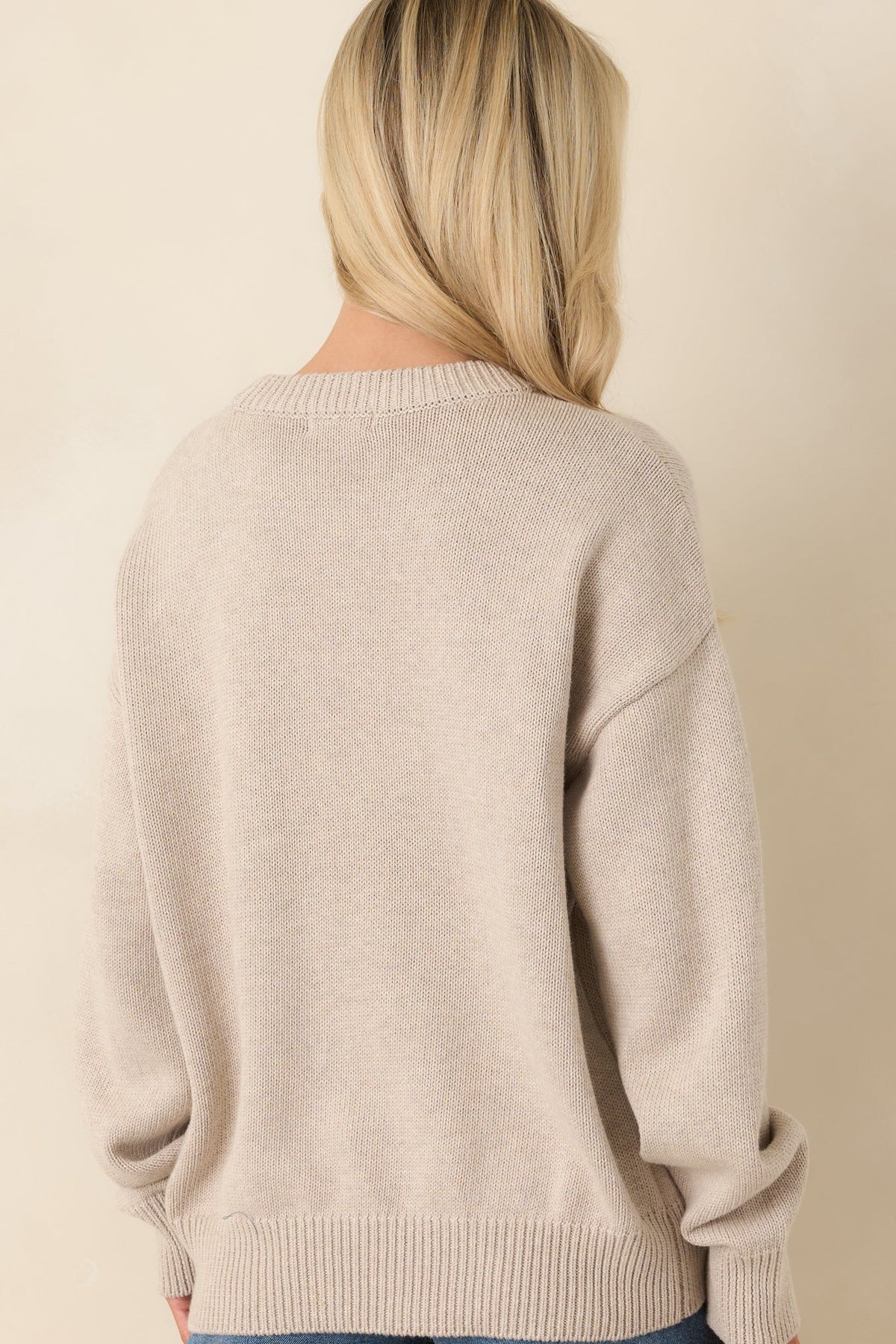 The soft natural heather cotton knit gives this sweater a versatile, easy-to-style look that pairs perfectly with denim shorts, linen pants, or relaxed beachwear. A classic crew neckline, long sleeves, and ribbed trim at the neckline, cuffs, and hem create a clean, structured finish while keeping the feel casual and comfortable.
