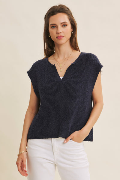 Slub Knit Relaxed Fit Short Sleeve Sweater