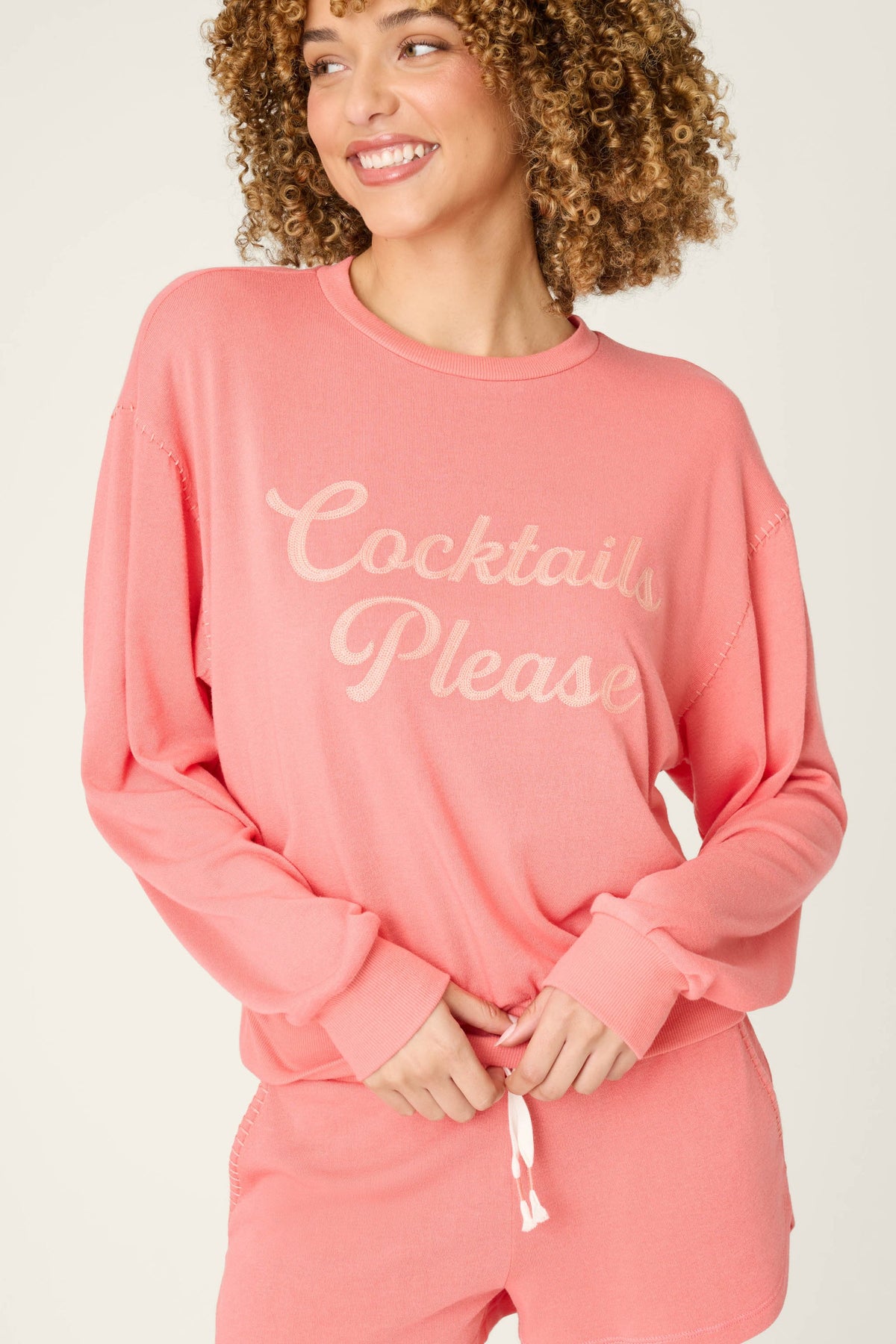 Cocktails Please Sweatshirt – Sunset Rose Vintage French Terry