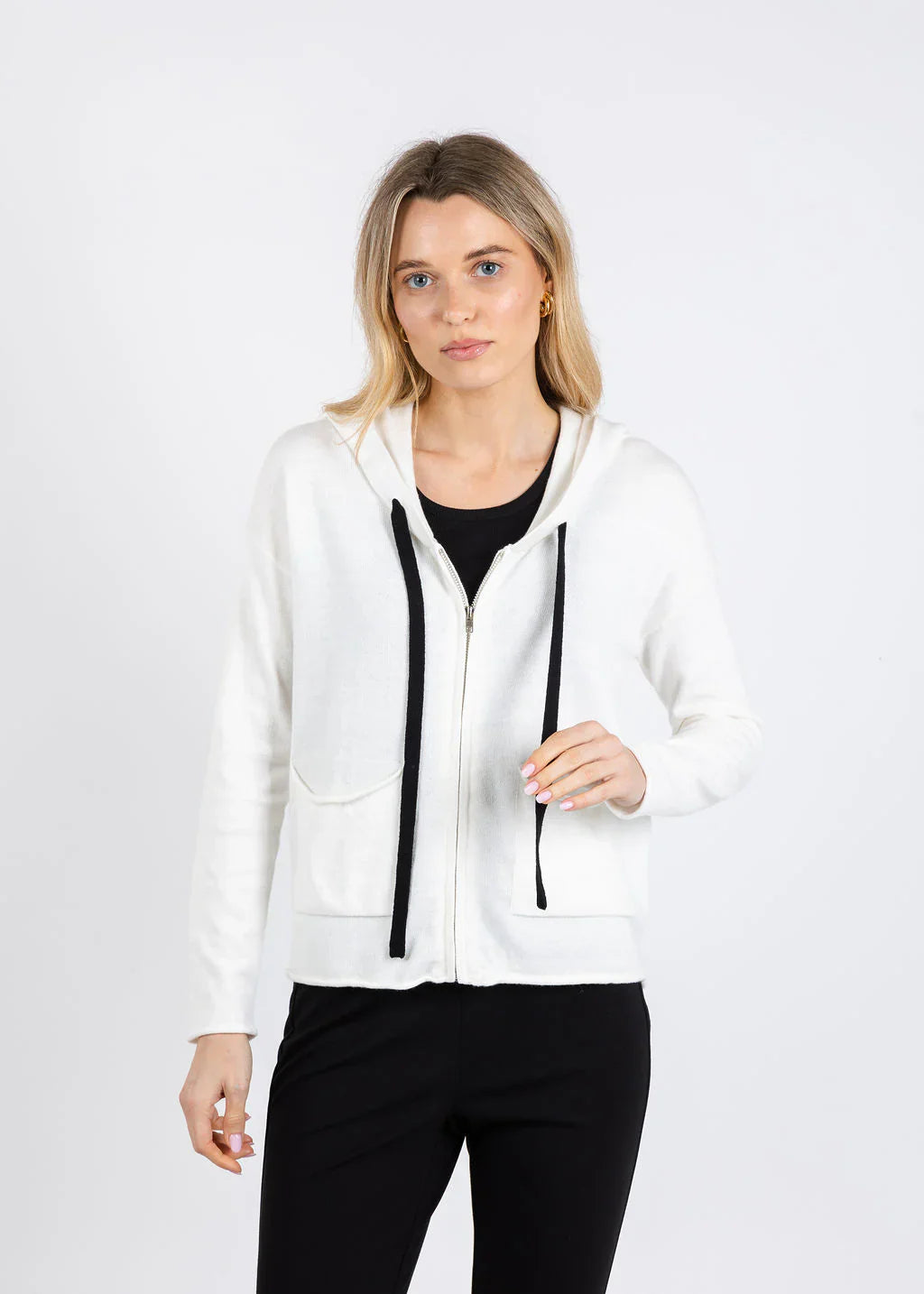 Thoughtfully designed with contrasting drawstring ties, a full front zip, and functional pockets, this versatile layer blends comfort with contemporary style. Perfect for pairing with denim, lounge sets, or layering over your favorite tee, it transitions seamlessly from laid-back weekends to polished everyday wear.