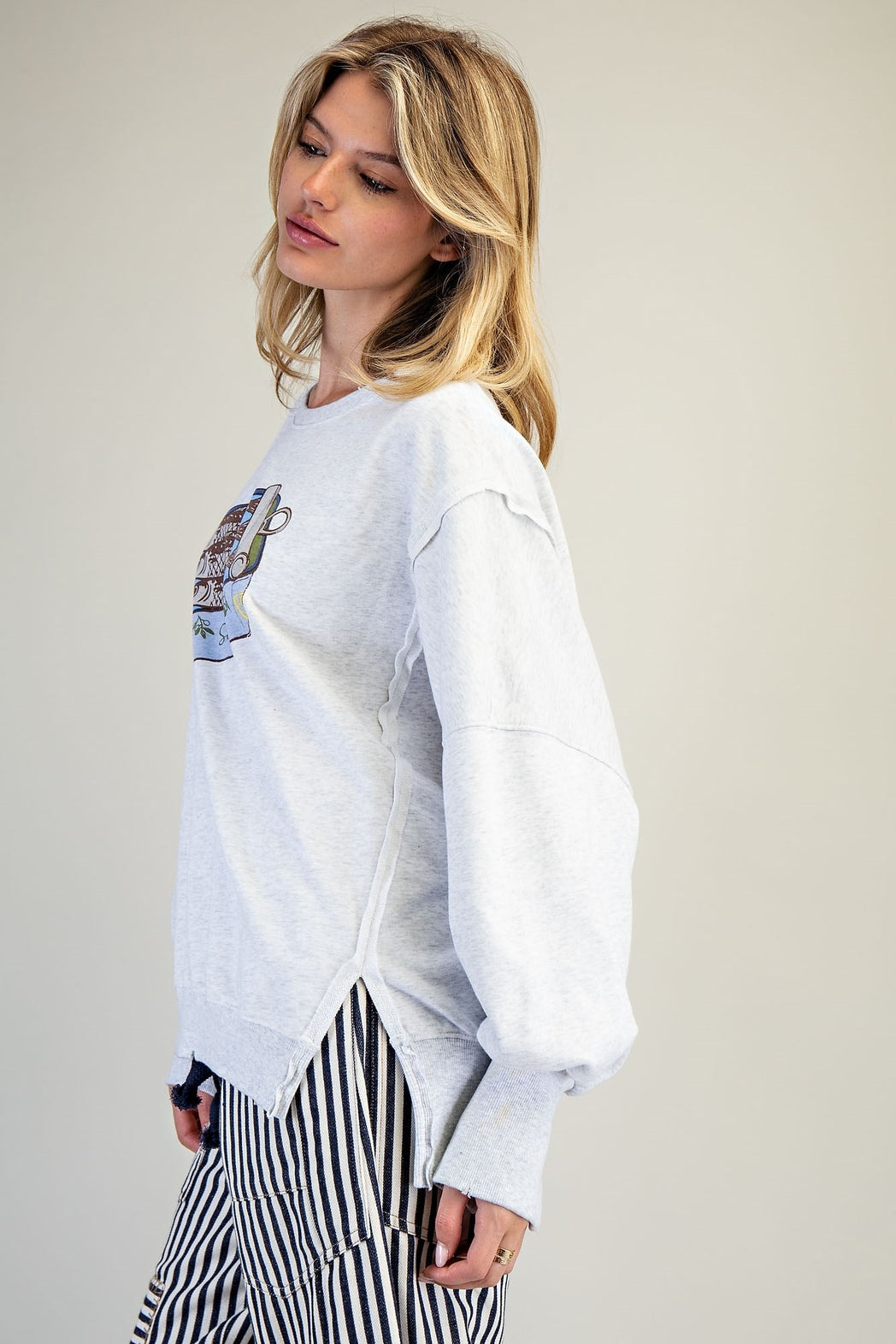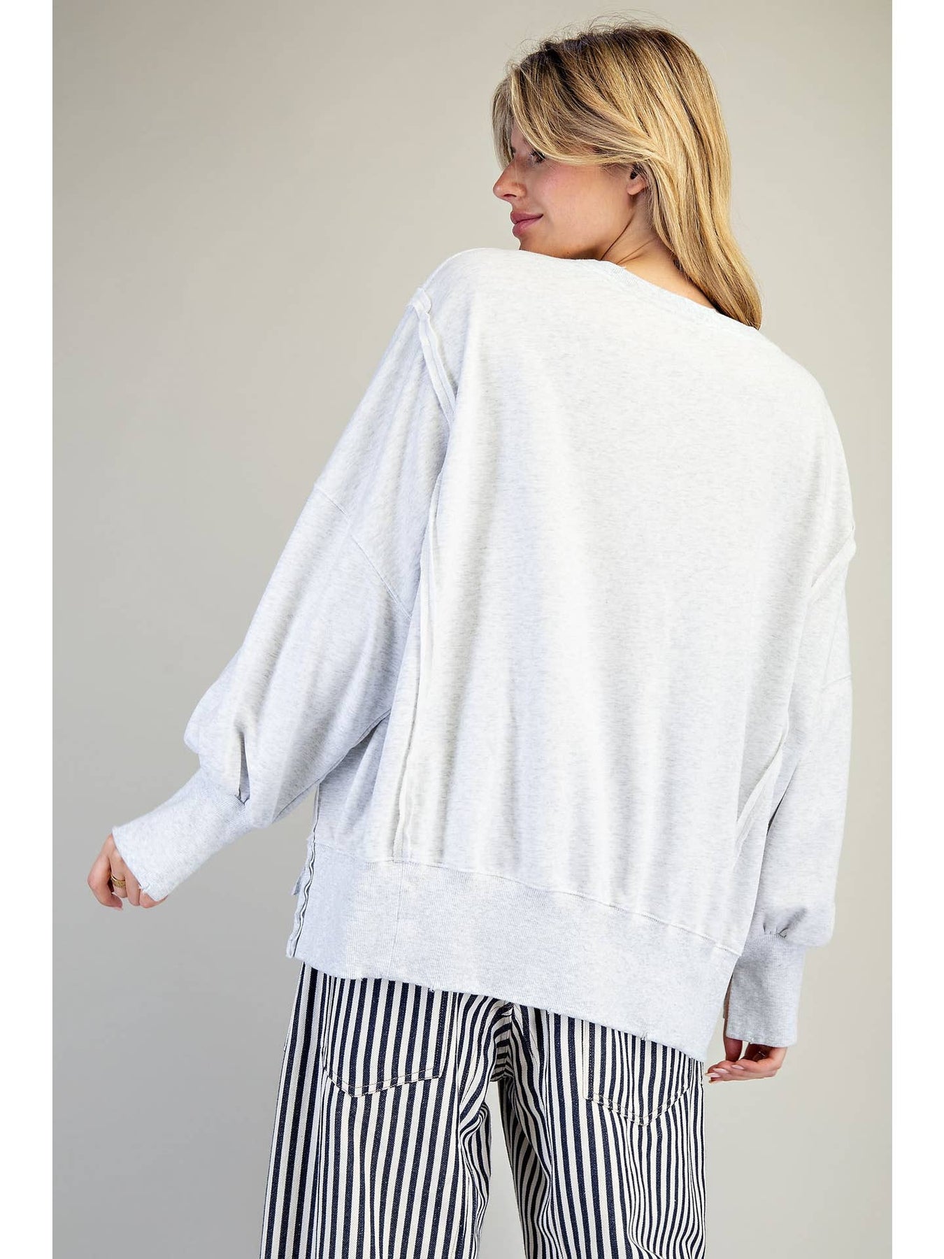 Made from a soft, breathable cotton-poly blend, it feels broken-in from day one. Dropped shoulders, side slits, and raw seam details give it that effortlessly cool, oversized silhouette, while ribbed trim keeps the cuffs, hem, and crewneck snug without feeling restrictive.