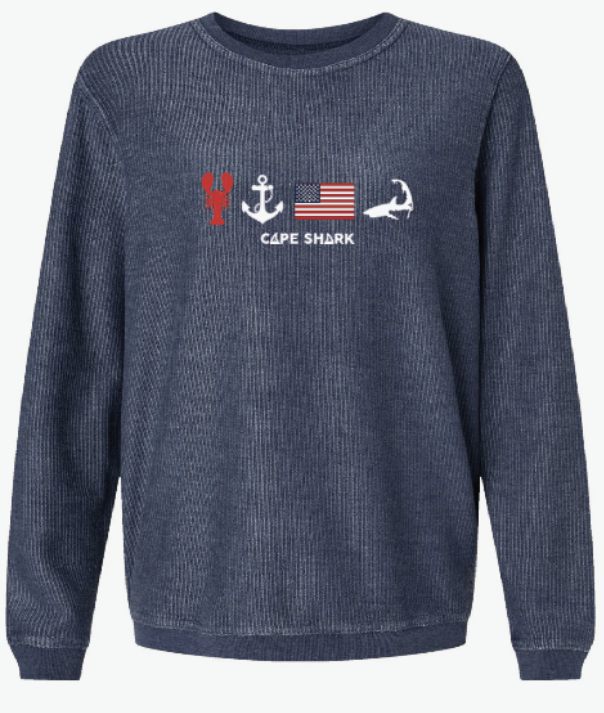 Upgrade your everyday layers with this Cape Shark corduroy crew neck sweatshirt, proudly made on Cape Cod. Designed with comfort and coastal character in mind, this unisex pullover blends premium materials with locally crafted detail.