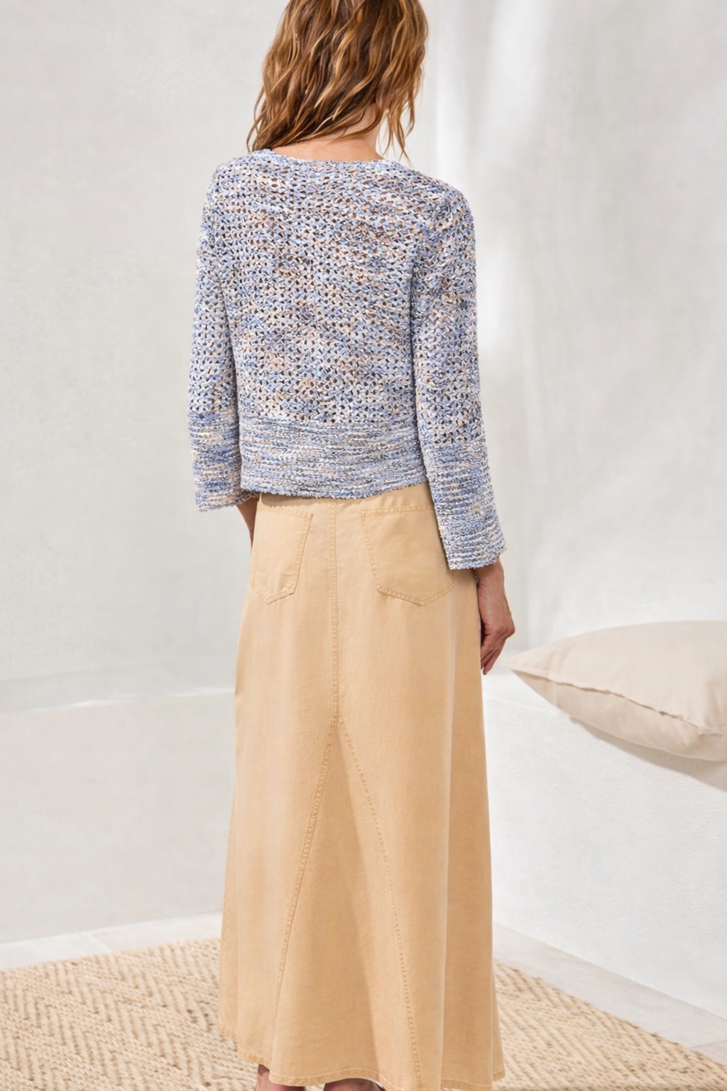 Meet your new go-to sweater! Those charming bell sleeves add a playful twist to your wardrobe, while the breezy, relaxed fit keeps things comfortable all day long. Dress it down with jeans or elevate it for nights out—this versatile piece transitions seamlessly from casual vibes to sophisticated style. Pairs beautifully with white for a crisp, classic look.