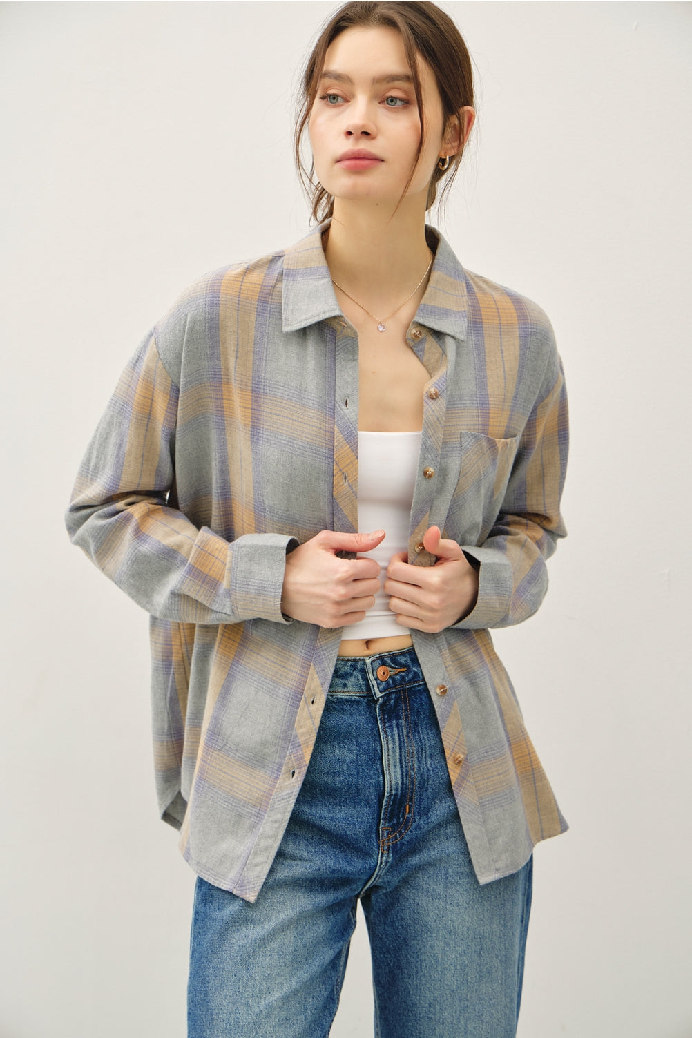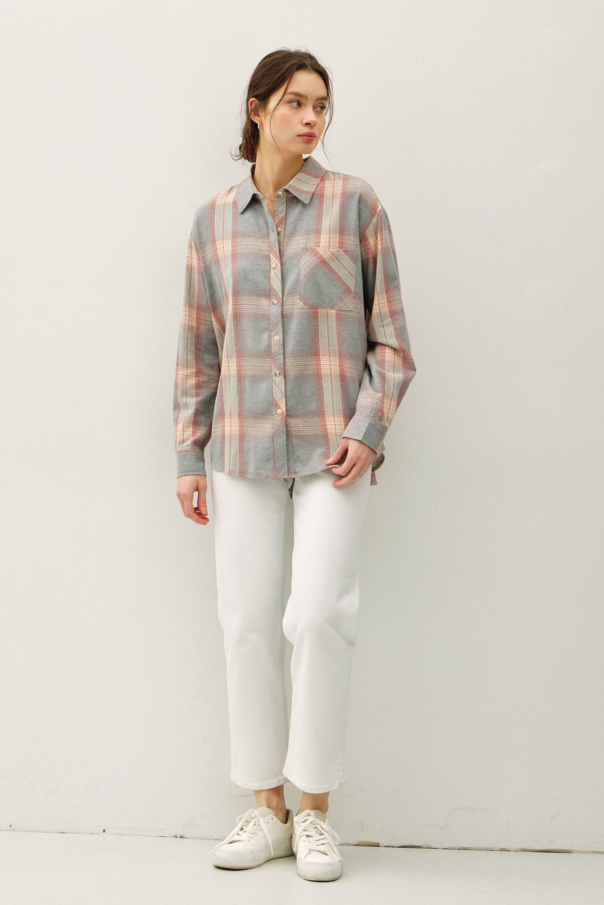 Embrace cozy vibes with this Classic Faded Plaid Shirt! Featuring a relaxed, oversized fit, button-down front, and a single chest pocket, it's perfect for layering in cooler months. The ultra-soft fabric, drop shoulder, and side slit round hem add comfort and flair, all while keeping you stylish below the hip. Ideal for fall, winter, and autumn adventures—grab this collared must-have for effortless warmth with a playful twist!