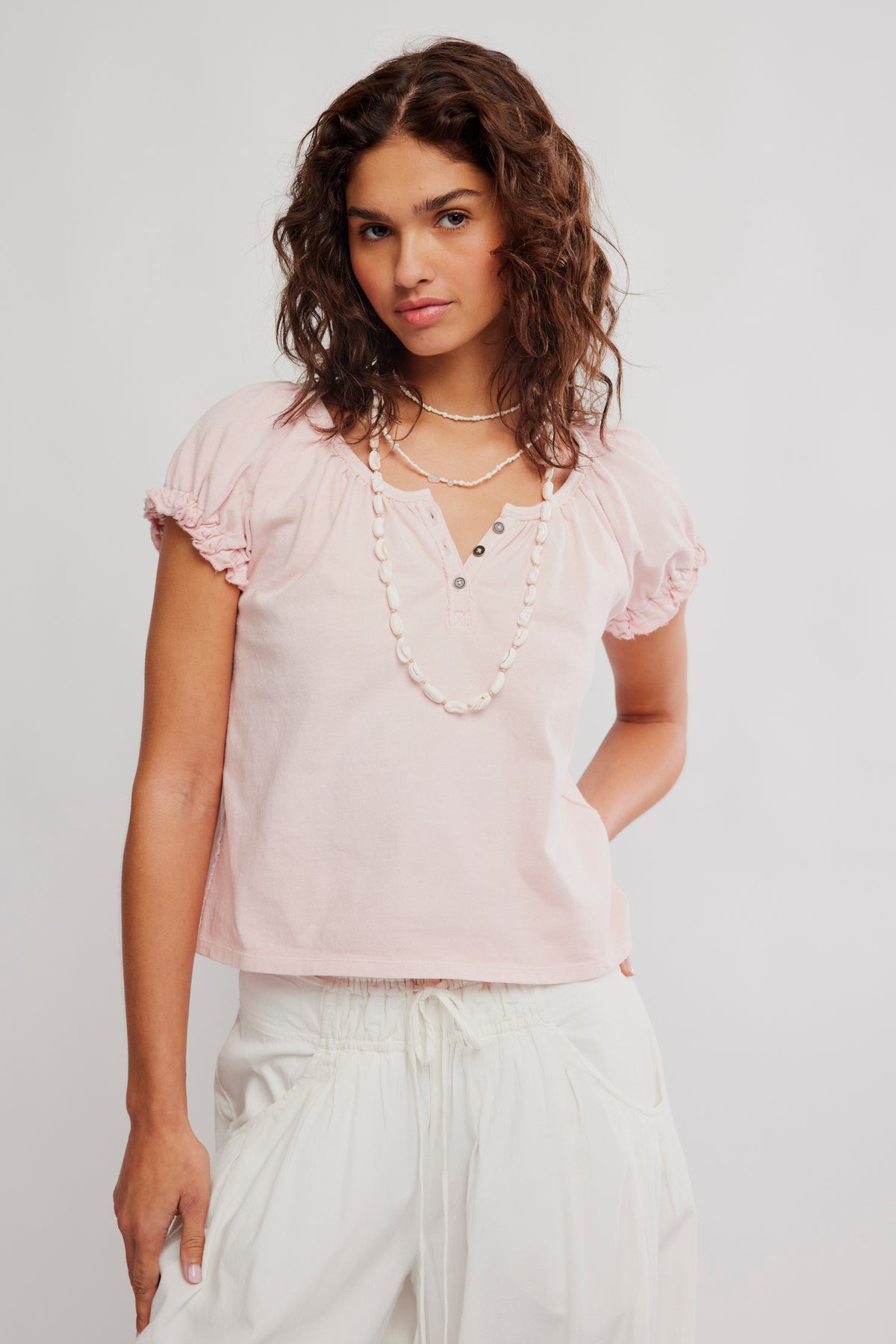 Free People Issa Puff Sleeve Henley Tee