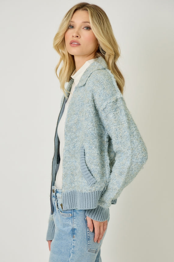 This cozy zip-up sweater jacket comes with a snazzy collar, handy side pockets, and a smooth zipper front. Finished off with snug ribbed knit cuffs and hem, it’s ready to keep you comfy and stylish all day long.